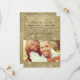 Bolhas de ouro redondas coloridas de champanhe enquadram este casamento elegante e chic, para salvar o anúncio da data. Personalize com texto personalizado e uma foto de noivado da noiva e do noivo. Perfeito para uma comemoração na véspera de um ano novo, mas design pode ser personalizado para outras datas de casamento também. Champanhe, ouro antigo e esquema de cor preta. Saúde para amar!