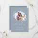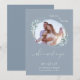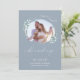 Lindo dusty blue com texto branco - ela disse sim em caligrafia manuscrita. Save the Date - dois tons de dusty blue, um pouco mais escuro no verso, acentua nossa moldura de foto com pincelada - cercada por delicada folhagem de eucalipto dólar de prata. Deixe seus convidados saberem que vocês estão se casando - e que mantenham a data especial em aberto