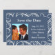 As espirais brancas dramáticas enquadram isto, salvando a data de forma elegante; enquanto a foto do casal tira o palco central. Essa data de salvamento também está disponível como um ímã e em várias cores diferentes.