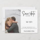 Celebre sua história de amor com este cartão de Save the Date chique e contemporâneo. Apresentando uma foto romântica de um lado e uma tipografia moderna e limpa do outro, este design combina minimalismo com elegância. Perfeito para casais que desejam um anúncio estiloso e fácil de personalizar, com espaço para um e-mail ou site personalizado.