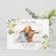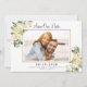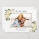 Elegante Salvar O design de quadro de foto de data apresenta a imagem do seu noivado moldada por um quadro de cor de ouro cintilante. Rosas românticas de casamento botânico branco-chico, mostrados em lenafy greenery, adicionam uma tendência e toque sofisticado em um fundo branco nítido. Personalize com sua foto favorita. (Para melhor posicionamento da sua imagem, use uma ferramenta de edição de fotos para centralizar e recortar ANTES de carregar no site do Zazzle.) Compartilhe seus detalhes de noivado e casamento com seus convidados em letras e roteiro elegantes de cinzas de carvão. A parte traseira da placa é branca. Pode entrar em contato comigo em invitationsuites@gmail.com se tiver perguntas sobre este ou qualquer dos nossos designs.