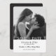Essa fotografia branca e simplista de gravata negra salva o anúncio da data captura a essência da simplicidade e da sofisticação. Este design apresenta uma foto em preto-e-branco com bloqueio branco na parte inferior e fonte preta de serif e script na parte frontal e um padrão geométrico simples preto-mudo no reverso.