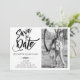Estes anúncios Salvar a data são projetados com um design branco e preto limpo. Personalize com sua própria foto e texto para anunciar seu dia especial. Faz um excelente para um evento elegante.