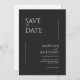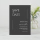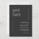 Esses cartões salve a data de 5" x 7" apresentam um design minimalista em letras brancas em um fundo preto com espaços reservados para os nomes de casais envolvidos, data de casamento e informações de local. O verso tem um lugar para inserir sua foto favorita com os nomes dos casais e a data do casamento.