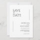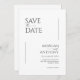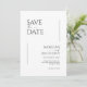 Esses cartões salve a data de 5" x 7" apresentam um design minimalista em letras negras em um fundo branco com espaços reservados para os nomes de casais envolvidos, data de casamento e informações sobre o local. O verso tem um lugar para inserir sua foto favorita com os nomes dos casais e a data do casamento.