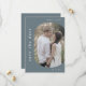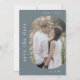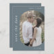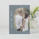 Esta foto de casamento azul, minimalista e empoeirado, salve o cartão de data é perfeito para um casamento moderno. A design minimalista apresenta uma tipografia simples, mas na moda, sobre cinzas de ardósia com ar de sofisticação moderna. Personalize suas datas com uma foto de noivado, seus nomes e sua data de casamento. Adicione seu site de casamento à parte de trás do cartão.