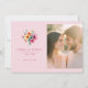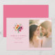 Este convite de casamento save the date apresenta um charmoso layout dividido com uma ilustração floral vibrante à esquerda e um espaço reservado para foto à direita. O design utiliza uma paleta de cores pastéis suaves em rosa, pêssego e creme, criando uma atmosfera elegante e romântica. O buquê caprichoso inclui flores variadas em tons de laranja, amarelo, roxo e verde, adicionando textura e profundidade à ilustração digital estilizada. O texto personalizável é apresentado em fontes serifadas em negrito, realçando o tom alegre e convidativo perfeito para celebrar o amor e o compromisso.
