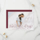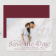Anuncie seu casamento em estilo com estas cartões salve a data elegantes. O design apresenta a sua foto horizontal de cheio com "Save the Date" (Salvar a data) em letras arrojadas. Personalize a foto moderna salve o cartão de data com seus nomes, data do casamento, local do casamento e detalhes do convite. A parte de trás do cartão contém detalhes adicionais, como o site do seu casamento em letras brancas, sobre um fundo de burgundy sólido.