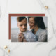 Anuncie seu casamento em estilo com estas cartões salve a data elegantes. O design apresenta a foto horizontal de sangria de cheio com "Save the Date" em letras brancas. Personalize a foto moderna salve o cartão de data com seus nomes, data do casamento, local do casamento e detalhes do convite. A parte traseira do cartão contém detalhes adicionais, como o site do seu casamento em letras brancas, em um fundo de argila sólida.
