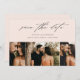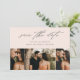 Uma fotografia romântica e simples salva o cartão de data com belas caligrafias, 3 fotos e texto mínimo na frente. O verso inclui o site do casamento para mais informações. Clique no botão editar para personalizar este design.