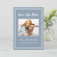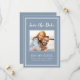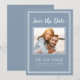 Este cartão de aviso prévio em azul empoeirado apresenta uma moldura branca nítida de borda dupla cercando sua foto de noivado para uma apresentação limpa e moderna. A letra e a escrita brancas adicionam um toque elegante sobre um fundo azul suave, e o layout de paisagem funciona lindamente com fotos aproximadas ou panorâmicas. A parte de trás do cartão é finalizada em azul empoeirado sólido para uma aparência coordenada e sofisticada. Personalize com os detalhes do seu casamento e sinta-se à vontade para entrar em contato para solicitações personalizadas.