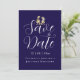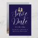 casamento de fotos elegante moderno salve a data com o tema Whimsical Dinosaur casamento "Salve a Data" azul e branco marinho Engraçado T-Rex Bride & Groom Wedding Announement Torne seu casamento realmente inesquecível com este divertido cartão "Salve a Data" com uma charmosa noiva T-Rex e noiva em estilo aquarela. Projetada para casais divertidos, esta carta única combina romance caprichoso com elegância moderna, combinando a ilustração adorável de dinossauro com uma escrita elegante na moda branco e nítida e a tipografia moderna num rico fundo azul marinho para uma primeira impressão memorável. Personalize facilmente a sua fotografia com os seus nomes e a data do casamento usando as simples ferramentas de edição de Zazzle, criando um anúncio digno de manutenção que os seus convidados adorarão. Perfeito para amantes de dinossauros, casamentos temáticos Jurássicos, ou casais que querem adicionar uma reviravolta relâmpago à sua papelaria de casamento. Esta trabalho de arte original do T-Rex pela artista e designer Catherine Sweetman está disponível exclusivamente no Zazzle, fazer que você salve a data tão única quanto sua história de amor.