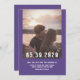 Foto moderna simples Salve o lançamento de data com uma cobertura simples e ousada de retângulo em roxo ultra violeta. Adicione uma foto e seus detalhes de casamento para personalizar. A cor de fundo no verso do convite pode ser alterada para complementar a foto ou para adicionar a cor do seu casamento.