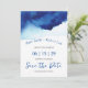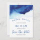 ♥ © Foto Moderno Script Aquarela Azul Índigo Save The Date Cartões Chatos, perfeito para um casamento contemporâneo elegante.♥