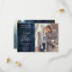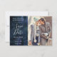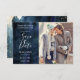 Salve perfeitamente o design de data para outono ou casamentos no inverno! O fundo é textura de aquarela do marinho escuro. Há uma camada muito sutil de brilhos dourados no topo e no fundo da foto. Substitua a foto do modelo com a foto do noivado.