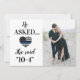 Convide seus amigos e família para comemorar seu dia especial com esses 'Ele pediu que ela dissesse: '10-4", linha azul fina, que a polícia temia casamento salvem os cartões de data, acessórios e presentes. Personalize com sua foto de noivado favorita, nomes e todas as suas informações de casamento no verso. Esta coleção de casamento de polícias será favorita entre todos os policiais, esposas policiais e polícias. COPYRIGHT © 2020 Judy Burrows, Black Dog Art - Todos Os Direitos Reservados. Foto personalizada que ela disse 10-4 Casamento de Polícia Salve a data
