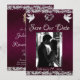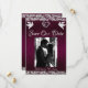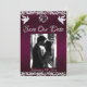 Este design romântico apresenta um elegante fundo roxo com bordas cintilantes, espaço para a foto do casal, um delicado coração de prata e pombas com a data do evento em escrita elegante na frente. O verso tem um espaço para monograma, mais informações e local para o seu site. Também disponível com fundos de cores diferentes para as cores do tema do seu casamento. (O brilho é simulado na arte). Projetado para combinar com a Coleção de Casamentos "Two Shall Become One - Hearts, Doves & Glitter". Para alterar os detalhes, clique em «Personalizar». Substitua a foto pela sua. Para mover o texto ou alterar o tamanho, a fonte ou a cor, clique em «Clique para personalizar ainda mais»
