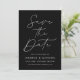 Anuncie seu próximo casamento em estilo com esta tenda foto do moderno Black Script, salve o cartão de data! O design apresenta "Save the Date" (Salvar a data) exibido na caligrafia branca com fundo preto. Personalize o minimalista e salve a data com seus nomes, data do casamento, local e site do casamento. A opção salvar a data é revertida para exibir a foto do noivado vertical com sangramento de cheio. O branco e preto chico salvam a data a escolha perfeita para casamentos modernos.