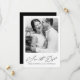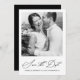 Elegante cartão de salvar a data de casamento com caligrafia e foto na parte de trás