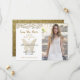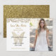 Borboleta de folha de ouro simples, na moda, elegante, em combinação com fundo floral de ouro branco e ouro brilhante de trás. Quinceanera única e adorável, salvando o convite de data, com foto personalizada da garota.