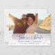 Primavera "Salve nossa Data" com foto. O script azul e a combinação de fontes sans serif são personalizáveis. As pétalas rosas cor-de-água cor-de-rosa com flores de cereja estão na frente, flores de cereja estão nas costas.