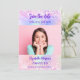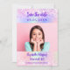 Um moderno e elegante Salve a Data para um Doce 16. Fundo holográfico, rosa, roxo com confete. Personalize e adicione uma foto, data e nome.