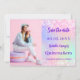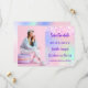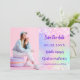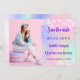 Um moderno e elegante Salve a Data para uma Quinceañera. Fundo holográfico, cor-de-rosa, verde-hortelã. Personalize e adicione uma foto, data e nome.