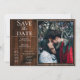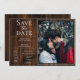Anuncie seu dia de casamento com esta Foto Rústica e Simples Salve o Anúncio de Data. Salve o design de data com um fundo de madeira rústico e posicionamento de fotos para o casal feliz. Adicione fotos e detalhes do casamento para personalizar.