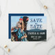 Marinho azul e branco, foto de casamento rústico, salve o cartão de encontro de Elke Clarke ©. Apenas foto de exemplo. Substitua por sua. Adicione sua data de casamento, nomes e localização. Use os prompts ou selecione "personalizá-lo" para obter mais opções de edição. Foto de noivado salva os anúncios de data com tema de casamento country usando fontes de tipografia e escrita manual antigas para um tema divertido e casamento vintage.