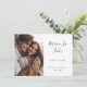 Mergulhe seus entes queridos no charme de sua próxima celebração com nossa "Foto simples de casamento espanhol Calliografia Salvar a Data". Este anúncio elegante combina perfeitamente elegância, simplicidade, e a essência de um casamento espanhol, criando um eterno para seu dia especial. Sua história de amor se desdobra lindamente na querida foto que enfeita o lado esquerdo deste anúncio. As palavras 'Reserva La Fecha', delicadamente escritas em caligrafia, acrescentam um toque de sofisticação, criando um convite que é clássico e contemporâneo. Personalize com facilidade, adicionando seus nomes, data, endereço e detalhes adicionais para tornar este lançamento exclusivo. A design simples, elegante e moderna captura a essência de sua celebração, garantindo que ela ressoe com sua visão para o perfeito casamento espanhol. Celebre o início de sua jornada junto com um anúncio que reflete a beleza de sua história de amor. Ordene agora que defina o palco para o dia especial e compartilhe o entusiasmo com a família e os amigos através deste chic e eterno Salve a data.