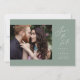 Design minimalista de escrita moderna em verde-sábio, com fotografia casal, simples e elegante. cartões salve a data de excelente para casamento moderno e outros eventos. Selecione "Clique para personalizar mais" na seção "Personalizar este modelo" para ajustar a posição e o tamanho da sua foto.