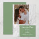 Este Anúncio de Save the Date de Foto Simples Mármore Verde Musgo vem com um design de texto simples, em um layout moderno e simples contra um fundo marmorizado esperando sua foto e detalhes do casamento para personalizar. Cores adicionais disponíveis com este design.