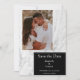 Este Anúncio de Save the Date de Foto Simples Marmorizada Preta vem com um design de texto simples, em um layout moderno e simples contra um fundo marmorizado esperando por sua foto, monogramas e detalhes do casamento para personalizar. Cores adicionais disponíveis com este design.