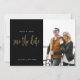 Guarde o cartão de data moderno e mínimo. Layout simples, limpo e moderno, personalize com suas próprias imagens. Salvar a data é projetada em uma fonte faux gold push script.