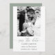 Sage Green Wedes salve os cartões de data com sua foto e seus detalhes em carta-chic na frente e mais detalhes de casamento no verso. Certifique-se de verificar seu pedido duas vezes antes de adicioná-lo ao seu carrinho, pois o que você vê na tela é o que será impresso. O Serviço de Design ao Vivo pode ajudá-lo com seu layout de design, se necessário. Mais designs na nossa loja.