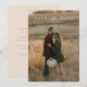 Um convite de casamento moderno e elegante, com um tom de bege, projetado com letras de roteiro. Personalize com sua própria foto de noivado e detalhes do casamento futuro na frente e no verso.