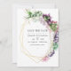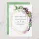 Convite de casamento com suculentas na moda com moldura geométrica dourada e lavagem de aquarela verde musgo reversa. Ideal para qualquer tema ou casamento de jardim.
