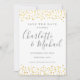 Com nomes em estilo de assinatura e confetes de corações dourados, este elegante cartão de save the date pode ser personalizado com as informações da sua data especial em letras cinzas elegantes e a sua foto especial no verso. Criado por Thisisnotme©