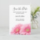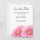 Salve o cartão de data com uma fotografia de um par de margaridas rosa. Elegante e na moda.
