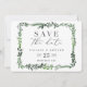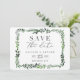 cartão de salvar a data com fotografia em aquarela frondosa. Com belas folhas em aquarela e tipografia moderna e ousada, este convite para salvar a data está na moda e é perfeito para qualquer estação. Parte de uma suíte de casamento