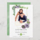 Cartões de salvar a data de casamento com suculentas modernas com moldura geométrica dourada e verso lavado com aguarela verde-sage.