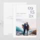 Design de tipografia moderna minimalista, com foto de casal e data de casamento ousada em cor azul empoeirada, chic e simples. cartões salve a data de excelente para casamento moderno e outros eventos. Selecione "Clique para personalizar mais" na seção "Personalizar este modelo" para ajustar a posição da sua foto.