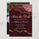 Cartão de Anúncio de Casamento Moderno Elegante com Aquarela Burgundy e Marble de Ágata Geodo - Parte de Trás da Foto