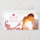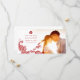 Desenho elegante boêmio de pavão vermelho e branco com detalhes florais e uma cauda feita de formas paisley, combinado com um símbolo chinês de dupla felicidade em uma moldura simples de círculo. Um design de casamento temático asiático muito único, chique e sofisticado para o casal moderno e elegante.