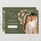 Salvar a Data do Casamento Elegante Boho com Flores Silvestres com Foto e fundo verde escuro. Lindas flores silvestres cor de pêssego e bege em aquarela e foto do casal. Essas flores silvestres em aquarela cor de pêssego contra um fundo verde escuro são perfeitas para casamentos de flores silvestres caprichosos.