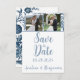 Uma graciosa ilustração vintage de toile francesa apresentando um arranjo floral em tons elegantes de azul. O design inclui uma variedade de flores, desde grandes flores abertas até delicados botões. Organizado em uma composição circular, exala elegância e serenidade atemporais, reminiscente da arte tradicional da porcelana. Perfeito para enquadrar fotos de casamento, convites ou decoração, este design adiciona um toque romântico e sofisticado a qualquer estética de casamento.