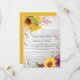 Convite de casamento rústico boho com girassóis e dálias para salvar a data em tons de burgundy ameixa e cores do sol. Ideal para qualquer tema ou casamento de jardim.