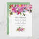 Convite de casamento floral de peônias rosa com detalhes em roxo e verde sage. Ideal para qualquer tema ou casamento de jardim.
