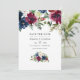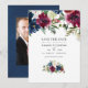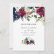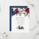 Convite de casamento save the date com peônias e rosas azul-marinho, branco e vermelho grená com tipografia elegante. Ideal para qualquer tema ou casamento de jardim.