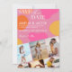Este convite de Save The Date com colagem de fotos é perfeito para o seu anúncio de casamento divertido. Este convite apresenta uma colagem de 6 fotos e círculos coloridos e divertidos no verso.